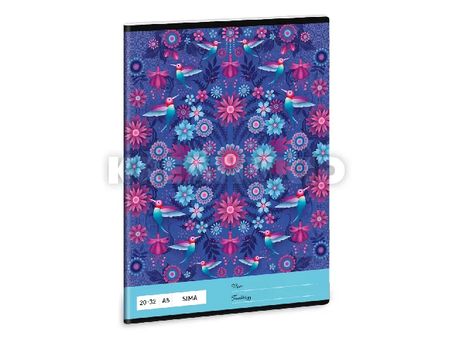 A/5-ös méretű, sima füzet. 32 lapos, belseje 75 gr-os papírból. Borítója 250 gr-os műnyomó kartonra lekerekített sarkokkal, fényes fóliázással, 4 szín nyomással készült.