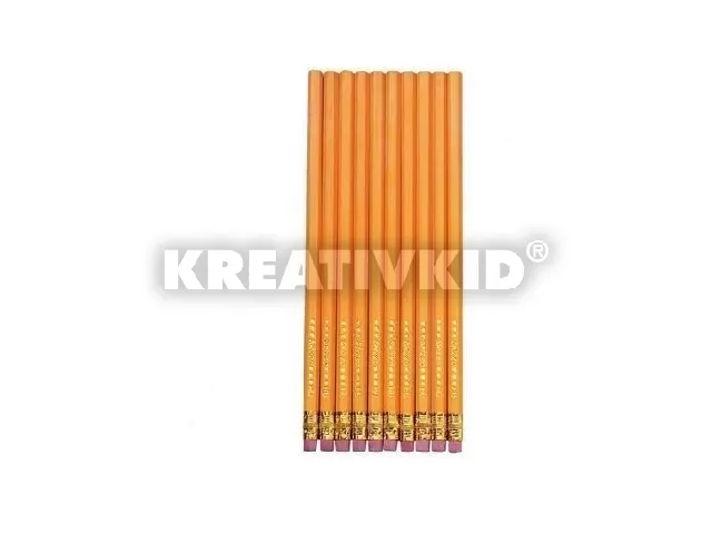 Grafitceruza radírvégződéssel, hatszögletű lakkozott fa testtel, keménység: HB, 10 db blisztercsomagolásban.