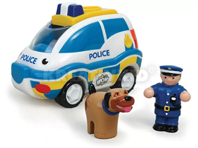 Állítsátok meg, tolvaj! Ez elől a szupergyors rendőr járőrautó elől nem lehet megszökni. A rendőrautó lendkerékkel működik, és valóságos motorhangja van, gombnyomásra pedig kinyílik a teteje. A készlet tartalmaz egy rendőrtautót, egy rendőrt és egy rendőrkutyát. Órákig tartó szerepjáték!