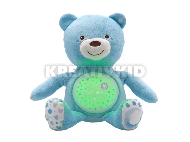 Nagyon puha plüss maci, ami zenél, fényeket vetít a falra, illetve éjszakai fényként is használható.