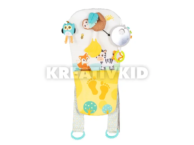 - Különböző aranyos és színes játékokkal felszerelt: rágókák, tükör és plüss játékok