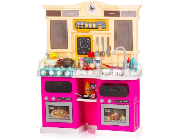- Tartalmaz 85 különálló játékot és kiegészítőt - edényeket, csaptelepet, kiegészítő játék élelmiszereket és magát a konyhát.