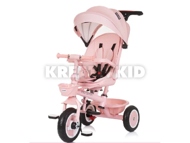 • A kerekek és a szülőkar nincs összeköttetésben egymással, a tolókarral nem tudjuk elforgatni az első kereket, a tricikli irányítása a babakocsikhoz hasonlóan történik!