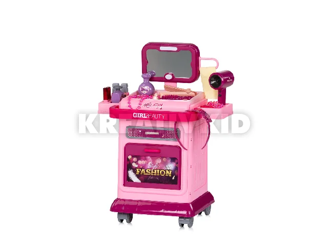 - Élénk rózsaszín árnyalatokkal, valósághű kiegészítőkkel és beépített tükörrel ez a szépségszalon órákig tartó fantáziadús játékra inspirál