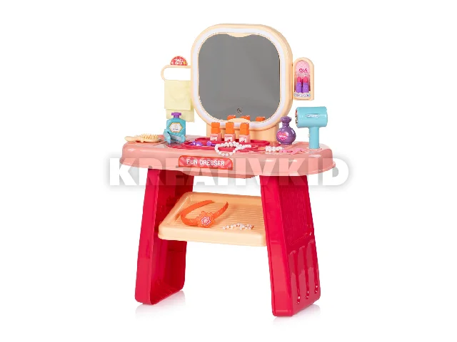 - Szett tartalma pl: hajkefe, hajvasaló, játék hajszárító, álsmink, parfümök, gyűrűk, karkötők, nyakláncok, fejpánt és még sok más – minden, ami a szépségápolási játékhoz szükséges.