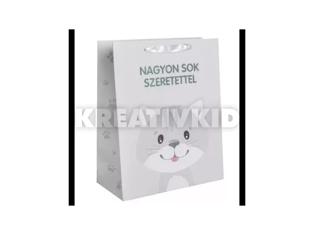 Cica mintás ajándéktasak. Anyaga: papír/műanyag Mérete: 26 x 32 cm