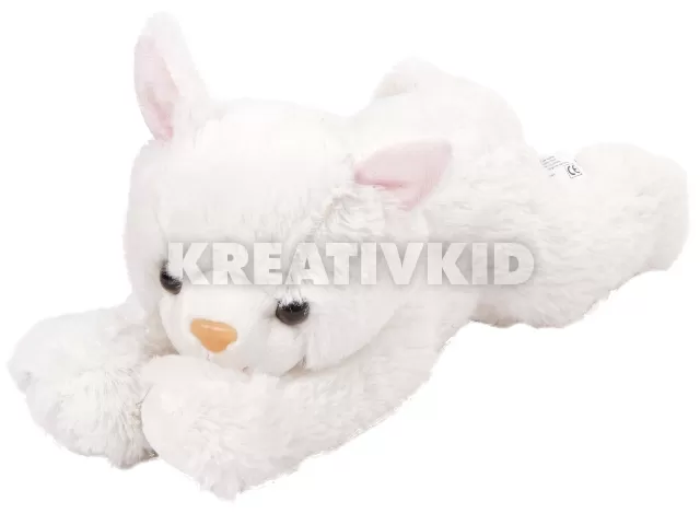 Hófehér plüss macska, fekvő plüssfigura változatban! A fehér Cica plüssfigura egy fekvő aranyos macska, rózsaszín orral és fülekkel. A cica rövid szőrrel készült, fekete gombszemei vannak, egy igazi simogatható kedvenc. A fehér Cica plüssfigura mérete: 25 cm.