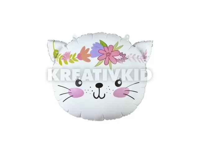 Cica virágkoszorúval fólia lufi a macskák rajongóinak. Héliummal és levegővel is felfújható.