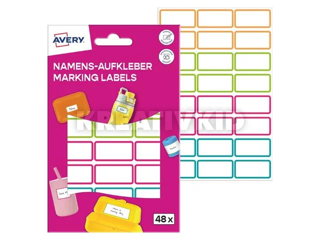 Címke, műanyag, iskolai, 31x15 mm, kézzel írható, AVERY ZWECKFORM, színes, 48 címke/csomag
