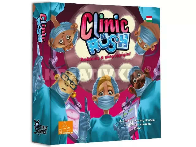 Orvosként alkalmaztak az új, élvonalbeli Egészségügyi Központban. Neked és kollégáidnak együtt kell működnötök az orvosi ellátásra szoruló betegek felvételénél, diagnosztizálásánál és kezelésénél.A Clinic Rush - Rohanás a sürgősségin! egy innovatív, valós idejű, kooperatív társasjáték, ami az orvosi szakmák kihívásokkal teli és nagy nyomást jelentő természetét szimulálja. A homokórákat dolgozóként használó munkáslehelyezési mechanizmus segítségével a játékosok akciók sokaságát hajthatják végre.Egy rendkívül tematikus élmény, ami egyformán leköti a haladó játékosokat és a családokat, tele szórakoztató kihívásokkal és éles döntéshozatallal! Nagy a nyomás, hiszen emberi életek vannak a kezeitekben!Doktorok, megbirkóztok a sürgősségi ellátással?