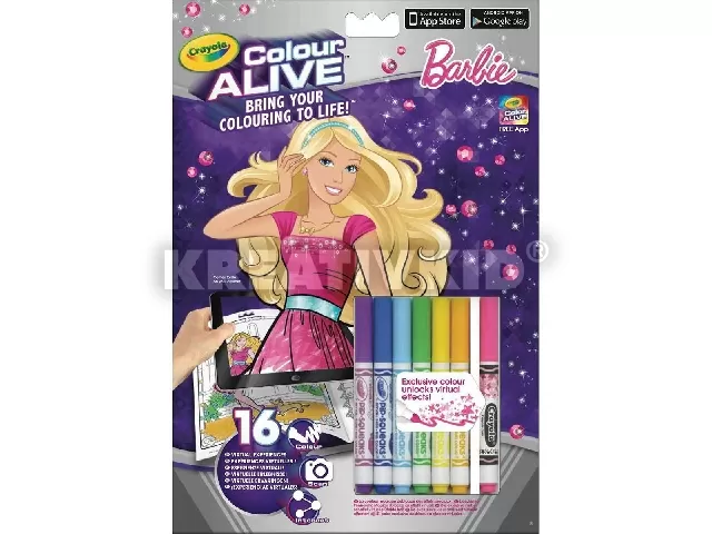 Keltsd életre Barbie rajzaidat a letölthető ingyenes applikáció segítségével! Színezd ki a rajzokat a különleges filctollak segítségével, irányítsd rá a tableted, s láss csodát, a rajzok életre kelnek, mégpedig pontosan úgy, ahogy kiszínezted őket. A kép még a mozdulataidra is reagálni fog. Hogyha a különleges effekt filctollat is használod, a rajz exkluzív színeffektet fog kapni.