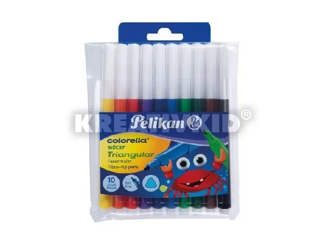 Kiváló minőségű filctoll háromszög alakú testel, 0,8 mm-es írásvastagsággal, ragyogó színek, vízbázisú, a legtöbb textilből kimosható, kupakján légrésekkel, CE jelöléssel.