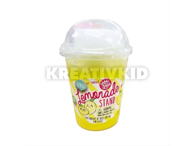 Citromos limonádé illatú izgalmas gyúrható, formázható, csavarható Compound Kings csillámos slime 6 darab jégkocka zselével trendi sárga színben, 283.5 grammos shake pohárban.