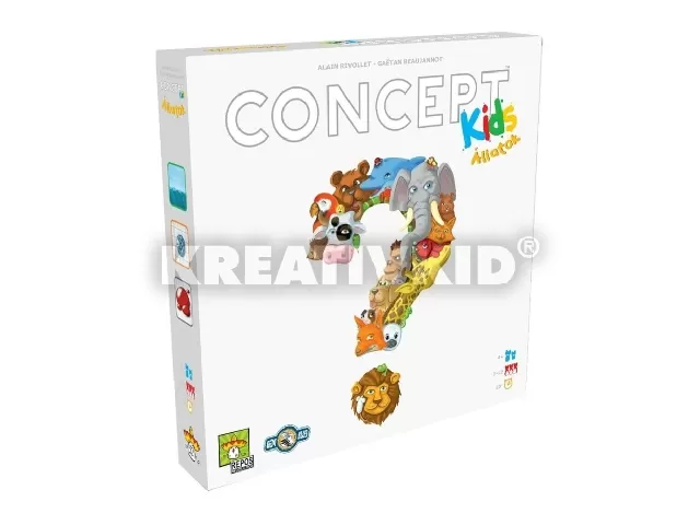 A Concept Kids egyszerű szabályú családi partijáték óvodásoknak is. A táblán képecskék jelenítik meg az állatok tulajdonságait: színeket, élőhelyeket, külső jellemzőket. A játékos húz egy állatot, és addig kell pakolgatnia a jelzőket a megfelelő tulajdonságokhoz, míg valaki ki nem találja a feladványt. A játékosok életkorától függően játszható teljesen együttműködve és versengve is. A kreativitást és az összefüggések felismerését fejlesztő társasjáték.