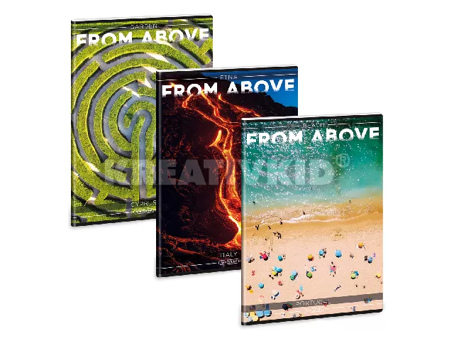 A/4-es méretű, prémium minőségű sima füzet. 40 lapos, belseje 75 gr-os, fehér papírból, minden oldala margózott. Borítója lekerekített sarkokkal, 350 gr-os fényes műnyomó kartonra, 4 szín nyomással, matt fóliával és UV formalakkal készült. Különböző mintájú füzetek a 10-es fólia csomagon belül vegyesen csomagolva, a füzeteknek megegyezik a kódja.