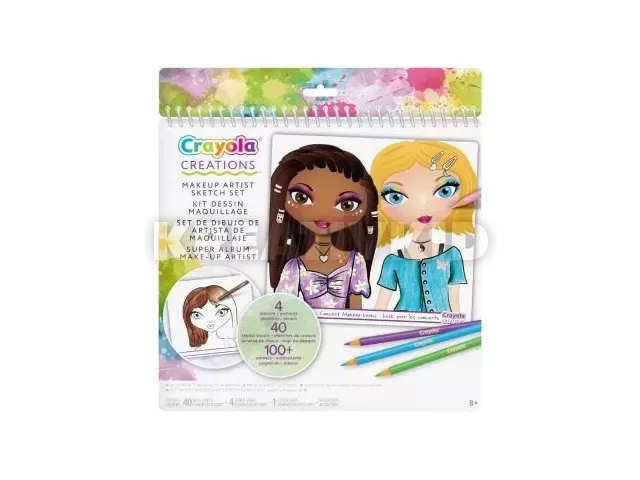 A Crayola Creations portfólió szettjével a kislányok egyedi, színes és igazán vagány rajzokat alkothatnak maguknak vagy barátnőiknek, és megtervezhetik, milyen smink lenne a legideálisabb. A csomagban találhatók sablonok, kiszínezhető arcok és több, mint 100 darab matrica is, hogy tényleg egyedi alkotások szülessenek.