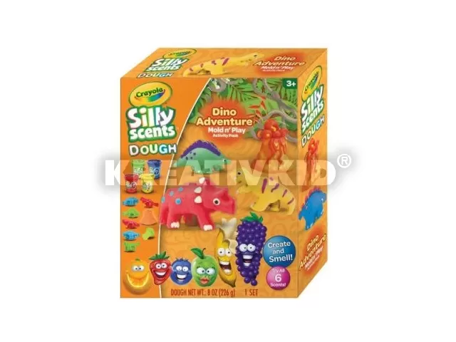 A Crayola Silly Scents mini gyurmakészletei könnyen formálható, puha, élénk színű, és ami a legjobb, illatos gyurmákat tartalmaznak, amelyekből a gyerekek kedvükre alkothatnak különböző állatokat, figurákat. A szettekben a 3 különböző színű gyurma mellett tematikus formázóeszközök is találhatók.