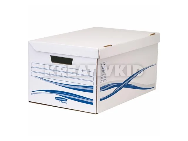 Csapófedeles archiválókonténer, karton, nagy, FELLOWES "Bankers Box Basic", kék-fehér
