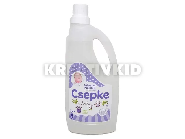 A Csepke levendulaolajos mosógél hipoallergén, foszfát-, klór- és parabénmentes készítmény. Speciálisan a kisbabák érzékeny bõréhez fejlesztették ki. Eltávolítja a foltokat és a kellemetlen szagokat a textíliákból, miközben kíméletes a bõrhöz. 3 hónapos kortól használható.