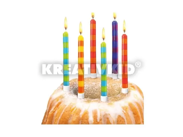 Gyertya Stripes, többszínű, égési idő: 12 perc, gyertyatartóval, 12db/bliszter
