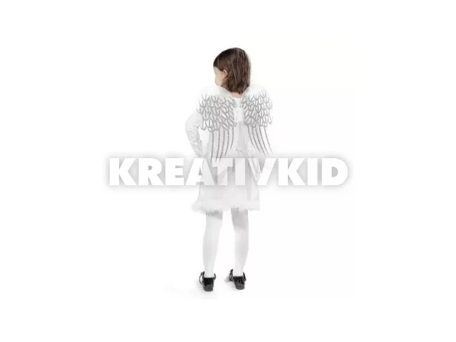 Csillogó angyal szárnyak betlehemezéshez. Áttetsző anyagból készült, ezüst csillámmal díszített, rugalmas szalaggal rögzíthető.Mérete: 37 x 45,5 cm