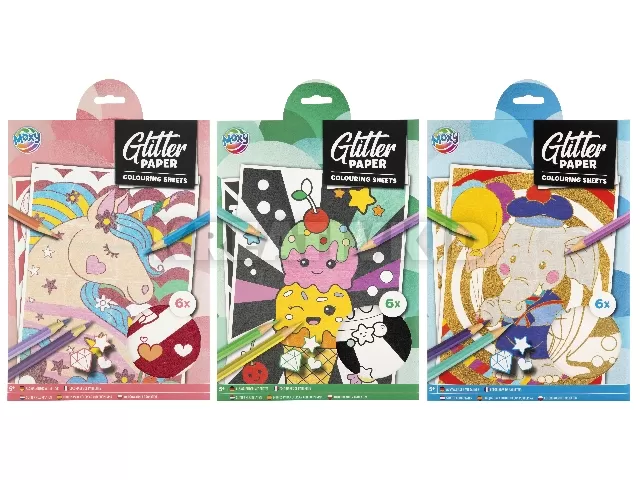 Csillogós kifestő, A4, 6 lap, 3 féle