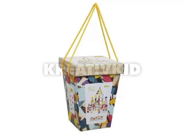 Egy igazán hasznos és szórakoztató alap építőjáték szett 50 darab, különböző formájú és színű fa építőkockával, praktikus csomagolásban. A doboz zárható fedéllel rendelkezik és zsinór füleinek köszönhetően könnyedén vihetjük magunkkal bárhová. Az építőkockák formáinak köszönhetően sokféle módon variálhatók, szinte bármilyen formát és építményt kirakhatnak belőle a gyerekek. A kockák egy része vidám színekben pompázik, így a variációk száma tovább fokozható.