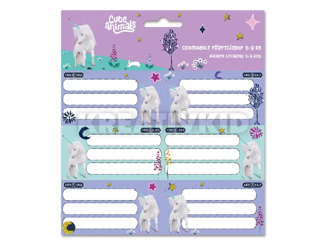 Ars Una Cute Animals-unicorn csomagolt füzetcímke (3x6 db)