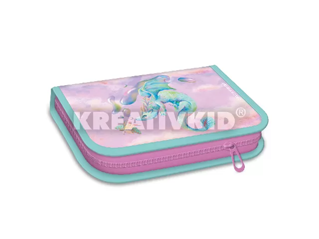 Írószerekkel töltött cipzáros tolltartó két kihajtható füllel, gumis kialakítással az írószerek tárolásához. Tartalma: 12 db színes ceruza, 3 db HB grafit ceruza, 1 vékony és 1 vastag postairón, 8 db színes filctoll, 1 db radír, 1 db hegyező, 1 db 17 cm-es egyenes vonalzó, 1 db háromszög vonalzó, órarend A és B hétre.