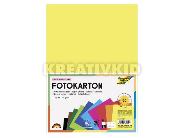 Dekorkarton, 2 oldalas, A4, 300 g, 10x5 lap, FOLIA, vegyes színek