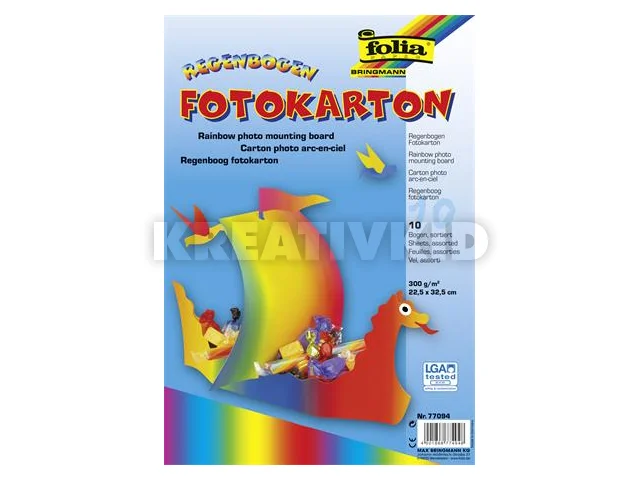 Dekorkarton, 2 oldalas, 22,5x32 cm, 300 g, 10 lap, FOLIA, szivárvány szín
