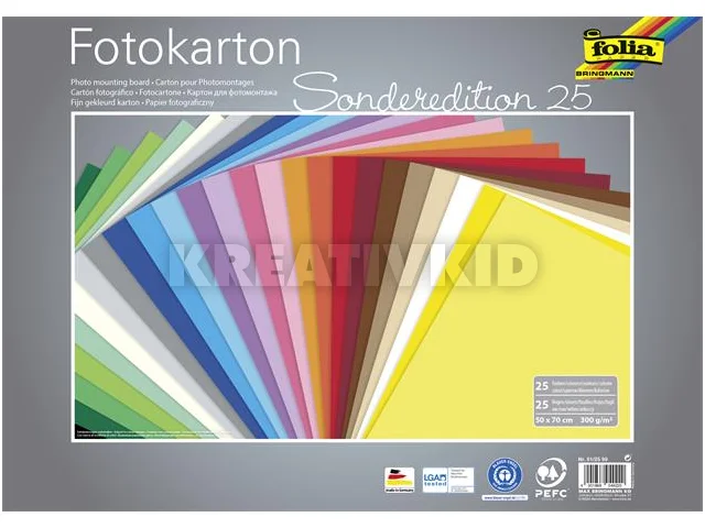 Dekorkarton, 2 oldalas, 50x70 cm, 300 g, 25 lap, FOLIA, vegyes színek