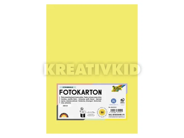 Dekorkarton, 2 oldalas, A4, 300 g, 50 lap, FOLIA, citromsárga