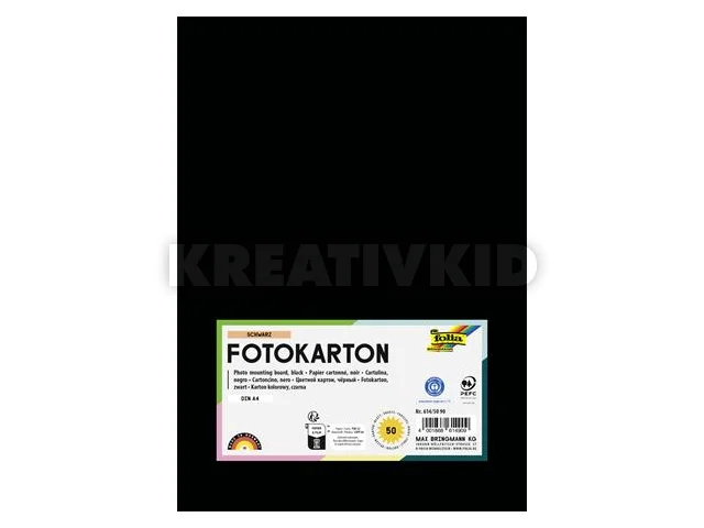 Dekorkarton, 2 oldalas, A4, 300 g, 50 lap, FOLIA, fekete