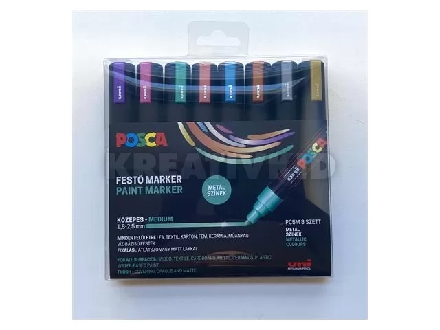 Dekormarker készlet, 1,8-2,5 mm, UNI "Posca PC-5M", 8 különböző metál szín