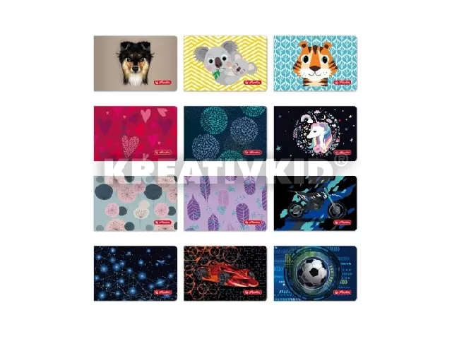 Diákigazolványtartó puha PVC fedéllel, 4 betéttel, 9x6 cm, fedlapjain is zsebekkel, különböző színekben és mintákkal.