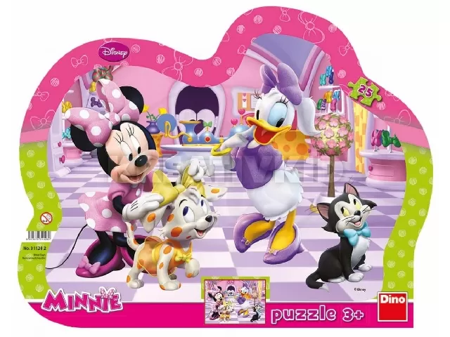 Minne egér és Daisy kacsa a boltba mentek vásárolni. Csatlakozz hozzájuk! A Minnie egér 25 darabos puzzle kisebb gyerekeknek készült, nagyobb darabokból. A Minnie egér kép kirakása fejleszti a picik megfigyelő képességét, megtanulják a színeket és a formákat, valamint a kézügyességre is nagyon jó hatással van. A Minnie egér 25 darabos puzzle kirakott méretei: 35 x 28 cm.