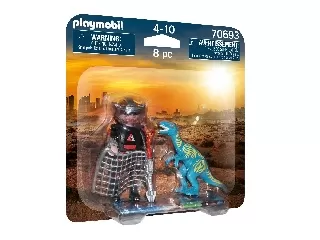 Rabló keresi a velociraptort. Megpróbálja az állatot csapdába csalni és a hálóval elkapni. Szerinted el tudja kapni a dinoszauruszt? A PLAYMOBIL DuoPa...