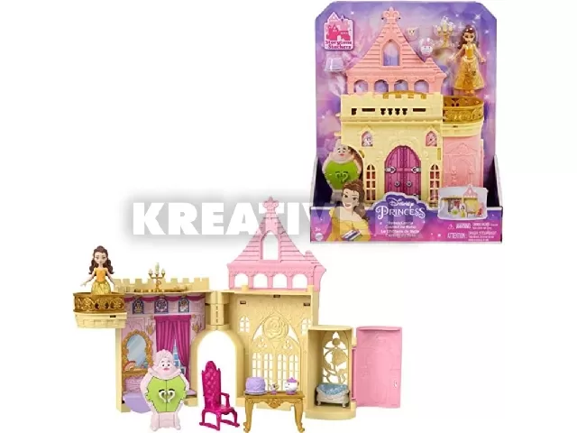 Ezzel a Disney hercegnők palota játékszettel a kislányok elrepülhetnek A Szépség és a Szörnyeteg mese világába. A varázslatos, kinyitható mesebeli kastély rengeteg játékteret rejt. A készletben a gyerekek megtalálják Belle miniatűr verzióját, aki úgy néz ki, mintha csak a filmvászonról lépett volna be a játékkastélyba. A szett további kiegészítőket is tartalmaz, pl. asztalt széket, a mese más szereplőit (pl. Lumiére, Mrs. Potts, Csészike) és még sok mást. A kastélyt a hordozó fogantyú segítségével bárhová magukkal vihetik a gyerekek. A figurák nem állnak meg maguktól.