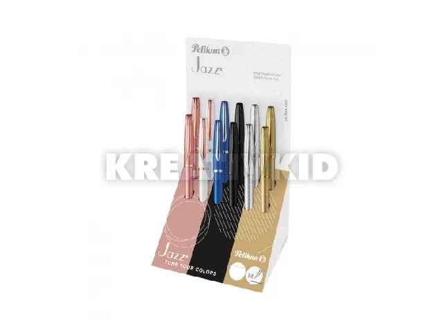 Display 12 db Jazz Noble Elegance fém golyóstollal. 6 szín/display, 2-2 db/szín/display. A tollak írásszíne kék.