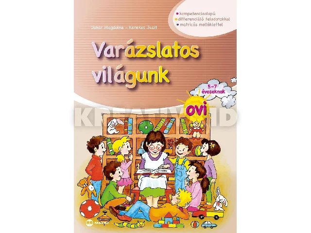 A Varázslatos helyesírásunk, környezetismeret, számoló, szöveges számoló, angol és német nyelv című sorozatunk újabb, Varázslatos számlálás és világunk című kötetei úgy orientálnak az iskola felé, hogy az óvodai tevékenységeket aszerint csoportosítják, hogy melyik iskolai tantárgy alapozásánaktekinthetők. A gyakorlófüzetek kompetenciaalapú, differenciáló, játékos feladatokkal dolgozzák fel az adott korosztály számára ajánlott ismereteket. A Varázslatos világunk ovi 57 éveseknek foglalkoztató munkafüzet az anyanyelvi és az értelmi nevelésben nyújt hatékony segítséget. A nagycsoportos gyerekek már ügyesen ismerik fel a térirányokat, képesek egyszerű testséma kialakítására, tapasztalati következtetések és összefüggések megértésére, jól fejleszthető a relációszókincsük és a szocialitásuk. Az iskolára való ráhangolást a kicsik számára sikerélményt jelentő játékos tevékenységekkel, például rajzolással, színezéssel, matricaragasztással érjük el. Kiadványainkat óvodai, iskolai és otthoni gyakorlásra egyaránt ajánljuk.