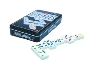 28 darabos dominókészlet fém dobozban. Dominó méretei: 52 x 26 x 10 mm.