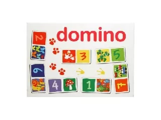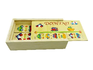 Natúr fa dominó, 45 darabos. Játékszabály: A dominókat ábrával lefelé az asztalra rakjuk, s összekeverjük őket. Egy dominót felfordítunk. Az első ...