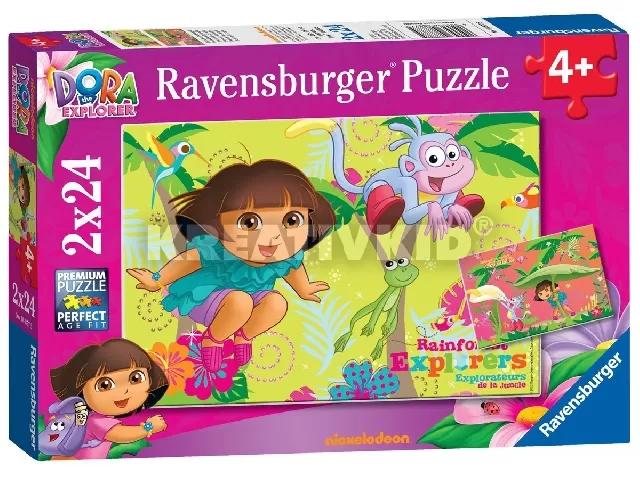 2 x 24 db-os Ravensburger puzzle Dóra, a felfedező jelenetekkel a Regio puzzle-kínálatából.