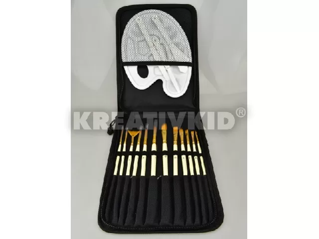 Ecset szett tokkal 12 darab ecset + 1 festékpaletta+ 3 spatula