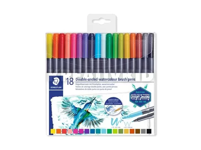 Ecsetirón készlet, 0,5-0,8/1,0-6,0 mm, kétvégű, STAEDTLER "3001", 18 szín