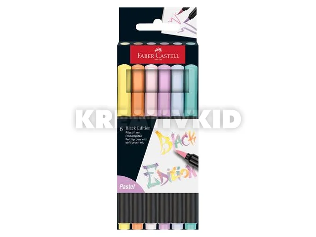 Ecsetirón készlet, FABER-CASTELL "Black Edition", 6 különböző pasztell szín