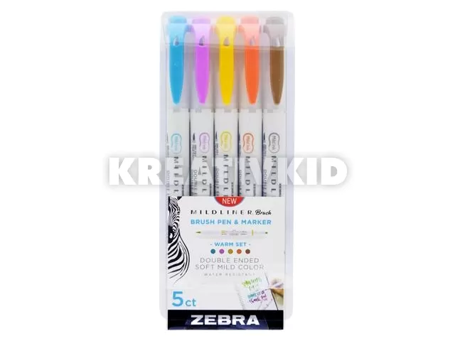 Ecsetirón készlet, kétvégű ZEBRA "Mildliner Warm", 5 szín