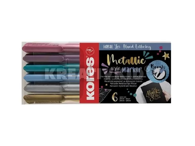 Ecsetirón készlet, KORES "Metallic Style", 6 metál szín