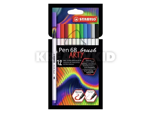 Ecsetirón készlet, STABILO "Pen 68 brush ARTY", 12 különböző szín